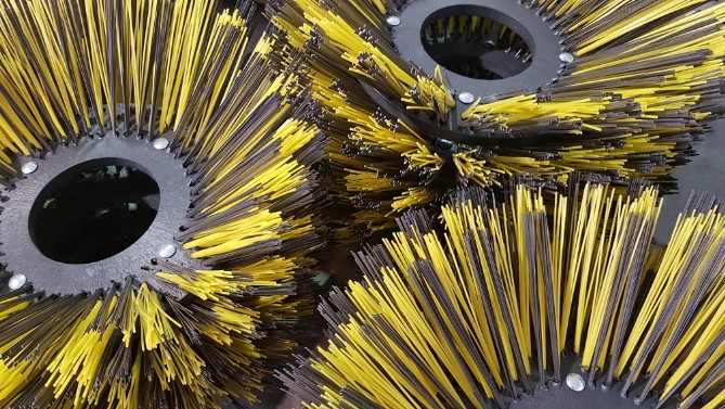 Cepillos centrales para las principales máquinas barredoras viales, realizados según especificaciones de origen. Dulevo 200 / 5000, Elgin Pelican, Ausa BD120 / BD201 / BD202 / BD250, Antoli 1500, Piquersa 1500 / 2000 / 2300 / 2500, Faun Viajet, Schorling Cityfant y Optifant.